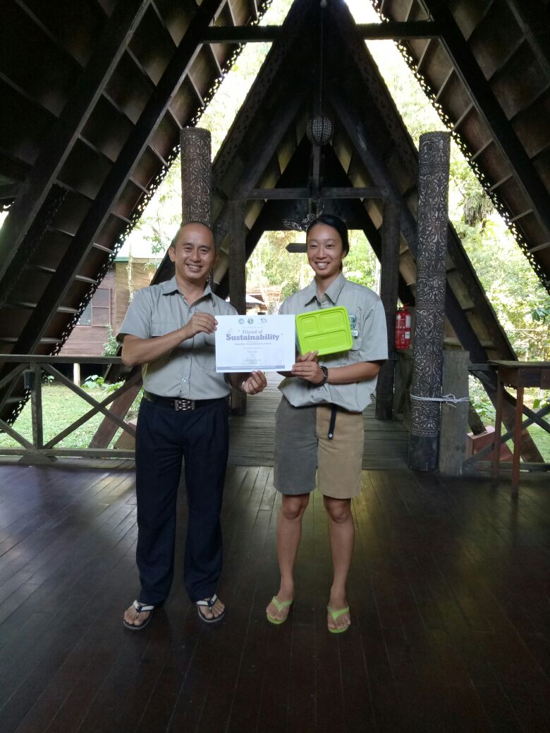 Before our monthly sustainability talk the following day, all the teams were congratulated for their effort. The winning team received a ‘Sustainable Kit’ which includes a SRL reusable bag, one reusable water bottle and one reusable food container while all the other participants received a reusable food container. In addition to that, everyone received a ‘Friend of Sustainability Certificate’ as a token of appreciation for their cooperation and participation. These prizes are also a way to promote awareness and to make them understand the importance of the 3 R’s: Reduce, Reuse, Recycle. Hopefully, events like this will continue to happen in the future, helping to heal our planet Earth and educating the present generations.